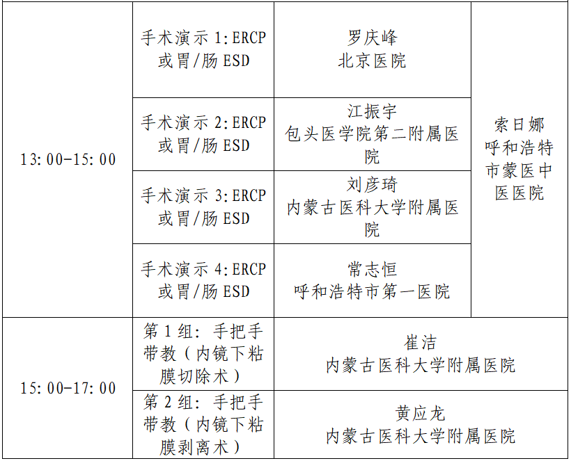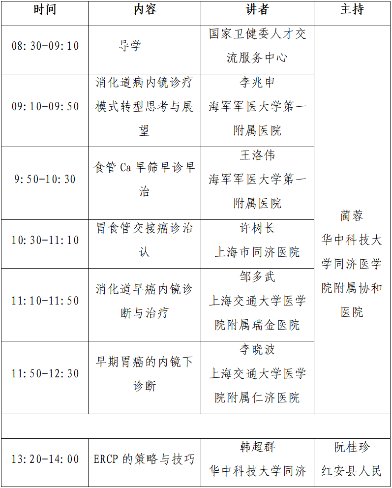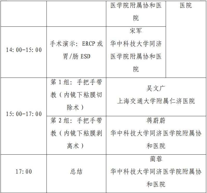 消化内镜三级及部分四级诊疗技术理论授课、实操培训、手术演示等(日程安排详见附件)。