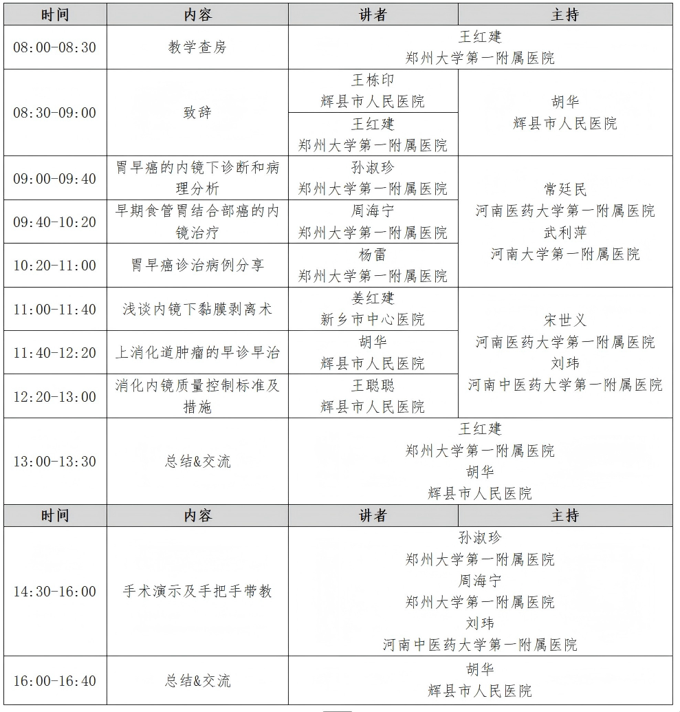 消化内镜三级及部分四级诊疗技术理论授课、实操培训、手术演示等(日程安排详见附件)。