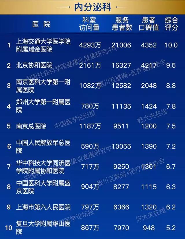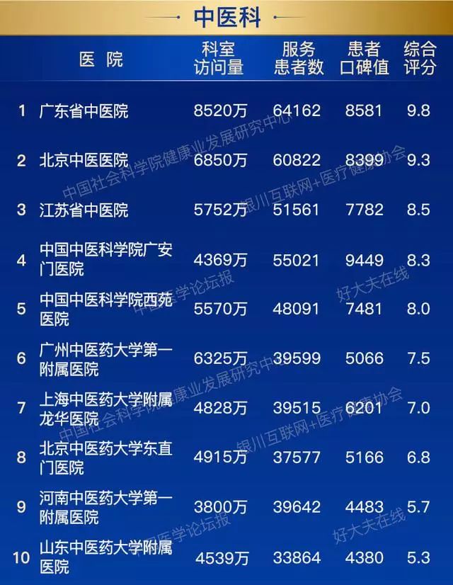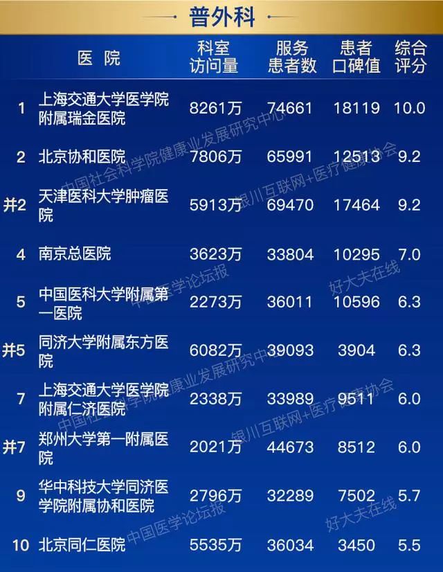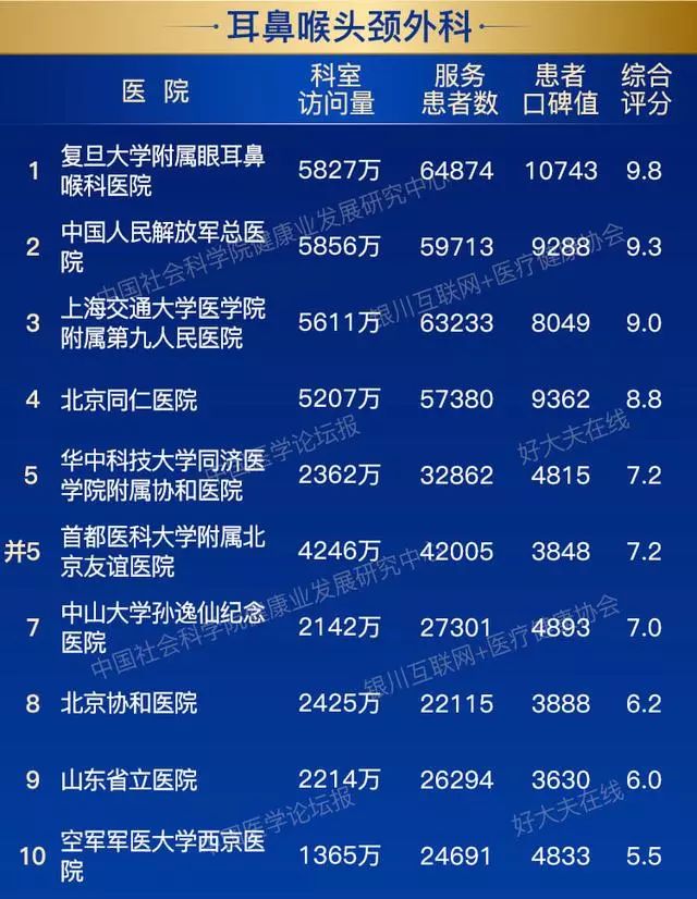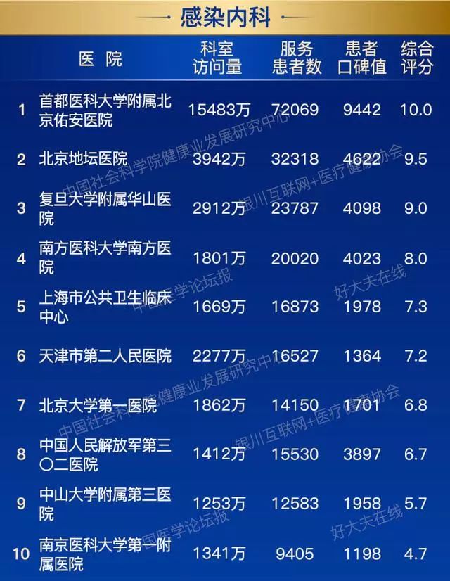 这是“医院互联网影响力排行榜”连续第三年发布,旨在为医院提升线上医疗服务体验、和患者的线上就医选择提供客观的参考。