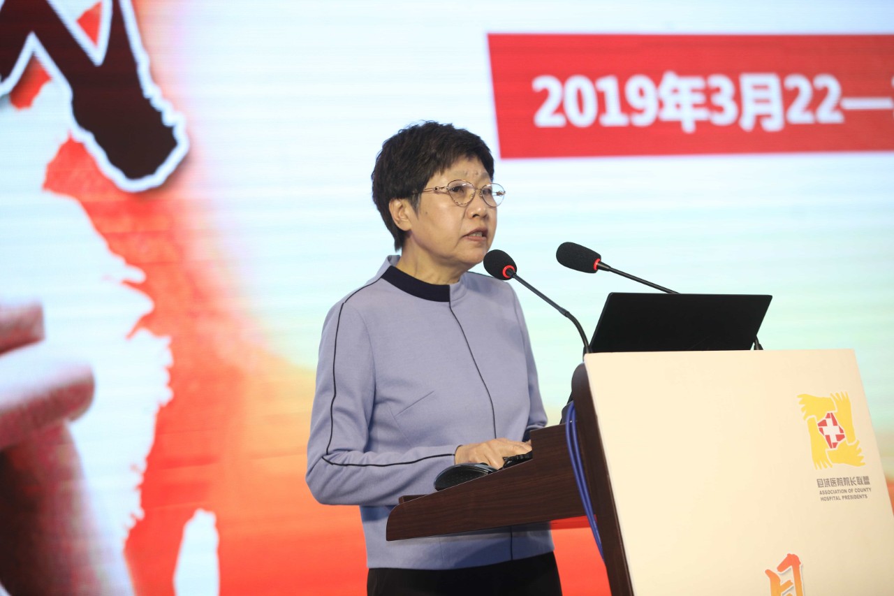 3月22日,在中国县域医疗发展高峰论坛上,中国县域医院院长联盟秘书长、中华预防医学会副会长孔灵芝主持会议并发表了题为“医共体下的慢病管理”的主题报告。